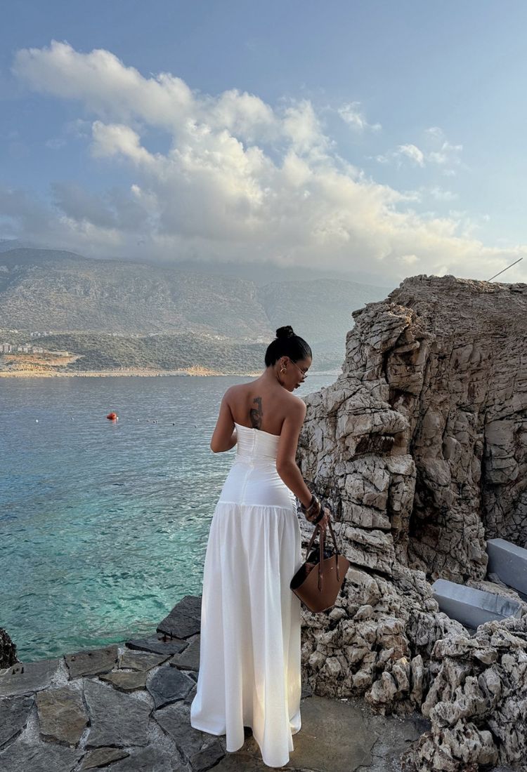 Biała długa sukienka z marszczeniami po bokach to kwintesencja subtelnej elegancji i kobiecości. Marszczenia dodają jej nie tylko ciekawej tekstury, ale także podkreślają sylwetkę, modelując ją w sposób niezwykle korzystny. Taki fason idealnie sprawdzi się zarówno na letnie przyjęcia, jak i na bardziej formalne okazje, gdzie chcesz wyglądać stylowo, ale z nutą delikatności. Biel, symbolizująca świeżość i czystość, tworzy harmonijną całość, którą można uzupełnić dodatkami w naturalnych odcieniach lub postawić na kontrastujące akcenty, jak kolorowe torebki czy buty.