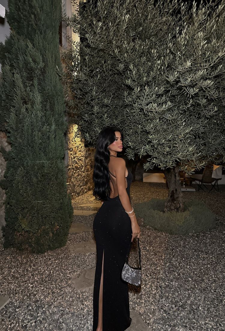 Dzięki przyciągającemu wzrok wzornictwu, ta długa sukienka z rozporkiem z tyłu , efektownymi plecami  i brokatem sprawi, że zostawisz po sobie ślad w nocy.  Sukienka na cienkich ramkach i dwoma różami na piersi. Łączy w sobie najwyższą jakość i elegancję. Sukienka ta, wyróżniająca się błyszczącym materiałem, doskonale nadaje się do noszenia na specjalne okazje lub zaproszenia. Jakość premium . Sukienka ręcznie szyta