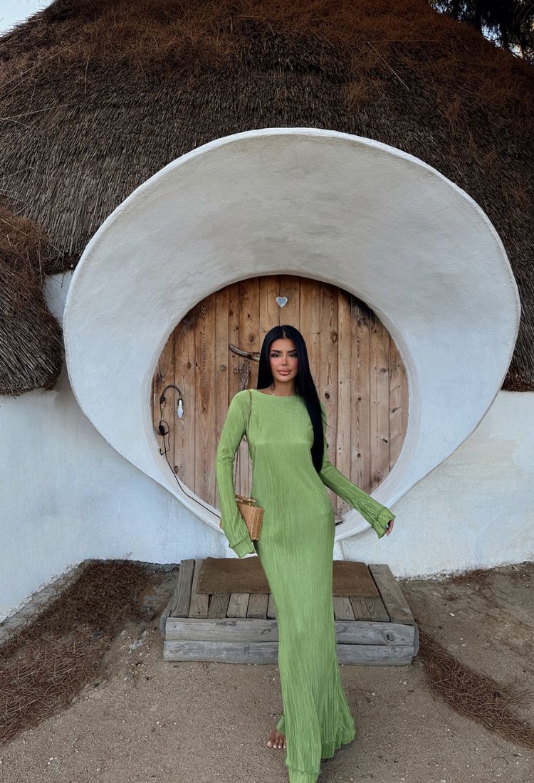 Luźna Sukienka Maxi Na Długi Rękaw Zielona -E012